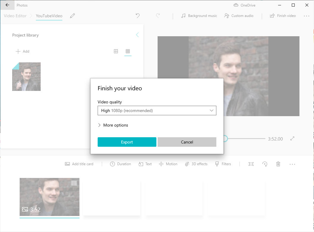 - Select “Export” and choose a location in File Explorer to save the video file. This creates the video and opens it and starts playing it.