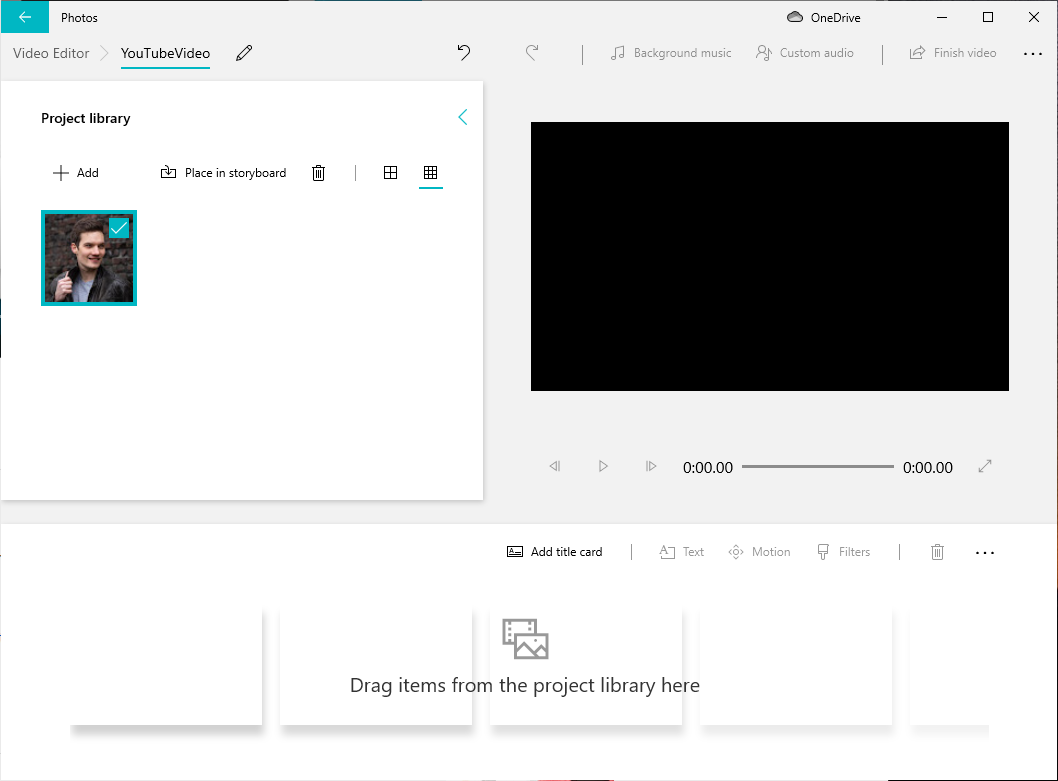 - Drag a your picture that you want to display when the audio plays in YouTube into the Project library.