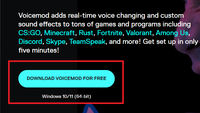 - Click the “Download Voicemod for Free” link.