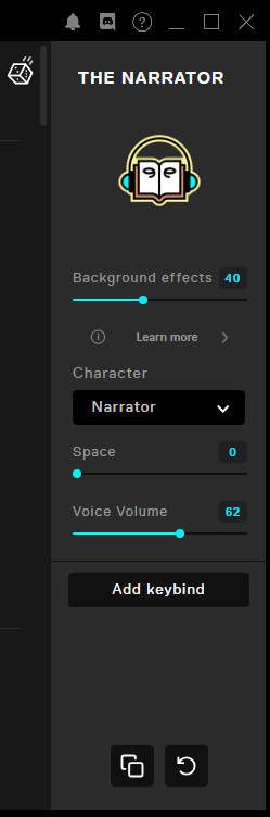 - The voice also allows you to further customize the voice with the settings in the right hand corner. A cool option to change is the Character which changes the voice actor used for the voice.