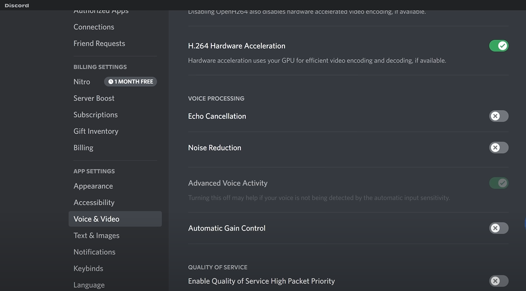 - For Discord, these settings are available off “User Settings” (in bottom left hand corner) -> “Voice & Video”