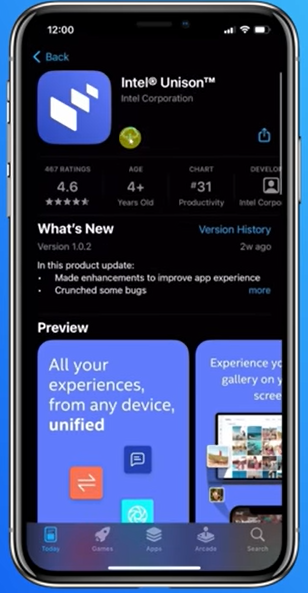 - Navigate to this link to install the free Intel Unison app in the Microsoft Store: Intel Unison Application in Microsoft Store
